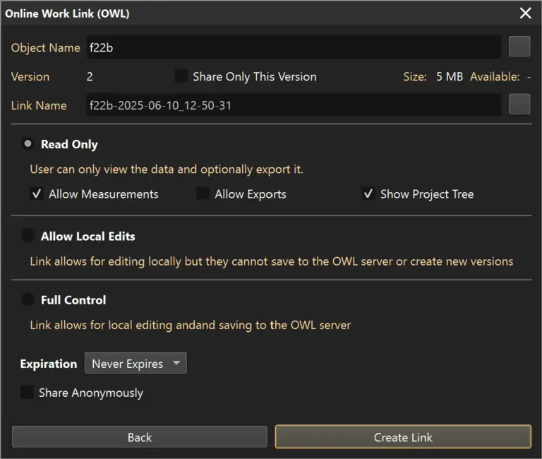 You have complete control over what can be done with the data. You may choose to allow people to edit the data, or how long they have access to the data. You may also turn on or off certain permissions such as being able to export the data or allowing someone to use measurement tools.