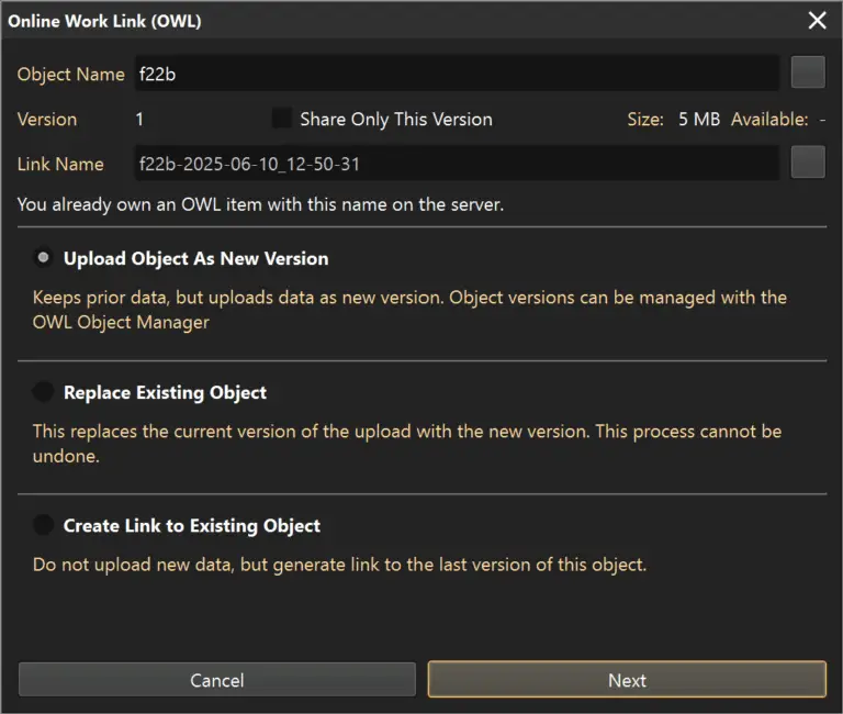 Objects and versions can easily be managed. Permissions can be changed or revoked at any time through the OWL Menu.